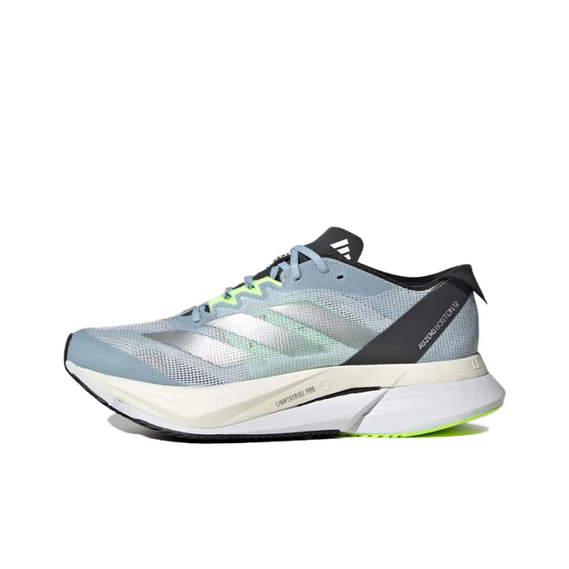 Adi_das adizero Boston 12 Mesh Low-Top Carbon Plate Running Shoes Women's Blue Silver Black