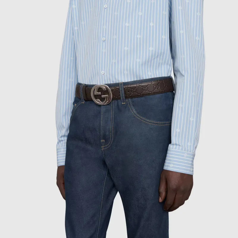 Gucci Signature Leather Belt Men's Brown 4cm Width
