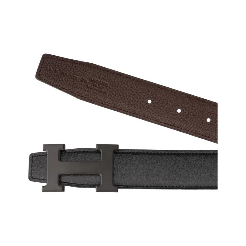 HERMES Constance Metallic Cowhide Belt Men's Chocolate/Black Width 3.2cm